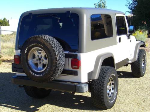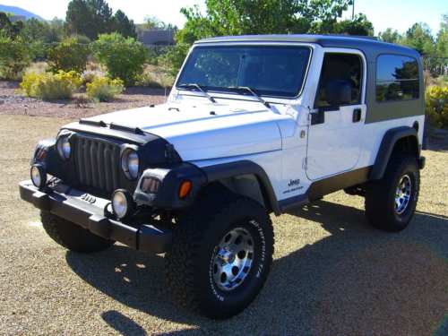 Hard tp find LWB, has three tops (hardtop, folding top, bikini top), overdrive transmission, Wolf front bra,Custom wheels with Goodyear wrangler 33x12.50x15 tires (5) as new, Kenwood am/fm/cd/sirius stereo w/remote, Thule locking bike rack, running/ driving lights,just serviced with oil change and fresh antifreeze Great article in sept. 18 Autoweek magazine about wranglers. See picture