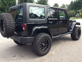 THIS VERY NICE 2012 JEEP BLACK ON BLACK IS WAITING FOR YOU, THIS BEAUTY IS READY TO HIT THE ROAD, IT HAS NO MECHANICAL DEFECTS, AND NO CHECK ENGINE LIGHTS PRESENT. INTERIOR AND EXTERIOR ARE IN GREAT SHAPE, AND EVERYTHING WORKS CORRECTLY AS IT SHOULD. IT HANDLED PRETTY GOOD FOR A LIFTED SUV, AND I AM VERY IMPRESSED AT THE RIDE, HANDLES GREAT, AND DELIVERS A COMFORTABLE RIDE. BRAND NEW RIMS AND 35 INCH TIRES
