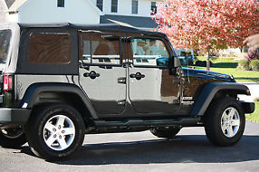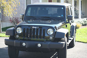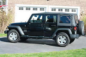 This 2014 Wrangler Unlimited Sport is only 6 months on the road. Soft Top and Spare Wheel Cover. Ext. color: Black Clear Coat. Int color: Black. 4-doors. 3.6L 6-cylinder 5-Speed Automatic Transmission 24-Valve VVT Engine. Command-Trac Shift-on-the-Fly 4WD System. Next Generation Dana 44 Heavy Duty Rear Axle & 30 Solid Front Axle. Advanced Multistage Front Airbags & Supplemental Front Seat-Mounted Side Airbags. Electronic Stability Control. 4-wheel Disc Brakes ABS, 4-wheel drive, Traction Control. Electronic Roll Mitigation. Hill Start Assist. Trailer Sway Damping. Sentry Key Theft Deterrent System. Tire Pressure Monitor w/Warning Lamp. Uconnect AM/FM/CD/MP3 SiriusXM Satellite Stereo - 6 Speakers. Connectivity Group w/Bluetooth Hands-Free. Steering Wheel Mounted Audio Controls. Air Conditioning. Reclining Front Seats w/Seatback Map Pockets and Rear 60/40 Folding Seats. Cruise Control, Fog Lights, Power Door Locks & Power Windows, Power Steering, Remote Keyless Entry w/Security Alarm, Power Heated Mirrors. Tilt Wheel, Deep Tint Sunscreen Windows. Running Boards, Quadratec All Weather Floor Liners/Mats Back and Cargo, Aluminum 17x7.5in Wheels & P255/75R17 Tires w/Full-Size Spare Tire.