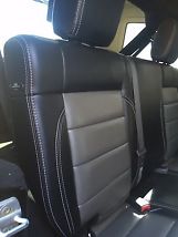 Custom Leather Seats Black sides with dark charcoal center from top to bottom with White baseball switching along both sides looks very nice!