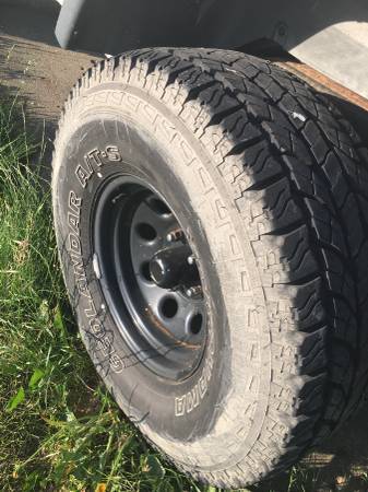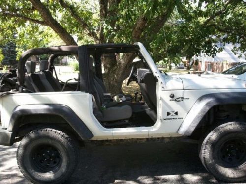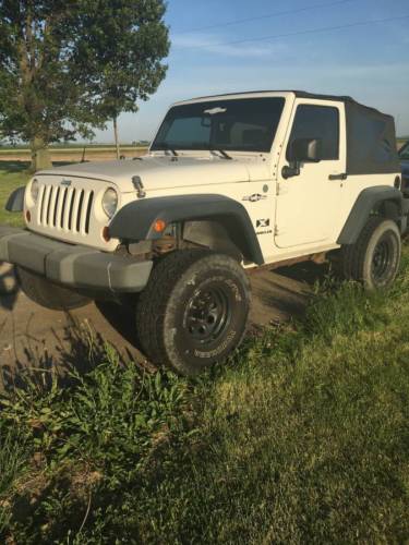 Bought a truck and no longer need my jeep. It has a 4" suspension lift on it. Brand new tires put on with about 300 miles on them. Drivers seat has a small tear on it. It has the original soft top on it (which is still functional but will need a new one soon). Jeep has been kept up on with oil change complete every 3,000 miles. Tune-up completed in September last year with a new coil pack. New battery in 2015. Has not been off-road; lady-driven. Has small rust on trunk door (see picture).