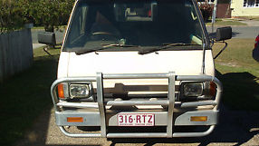 This vehicle is registered until end of August but selling unregistered, no longer needed and selling as is. Happy to drive to buyers location if in Brisbane region. The engine was rebuilt 140000klms ago. It has 8 new tyres (x4 rear x2 front & x2 spare) which are due shortly for the first rotation/balance and alignment free of charge. Alternator just rebuilt. 18 months ago, Front shockies and bushes were replaced along with new radiator, full clutch kit, engine mounts, gearbox mount, exhaust gaskets, tappet cover gasket, Brakes, new alternator belt and fan belts, front and rear main seals, timing belt kit, temp sender switch, pcv, front wheel bearings. New battery 3 months ago. Needs a tune/service, repairs and Some rust, like most older vehicles. Is fitted with 4 poster bull bar, reverse beeper, 2x antenna, UHF radio 40 channel with instruction book, JVC blue tooth radio (External Microphone installed), Remote and ipod connectivity and remote central locking. The fully lockable tray mounted tool box , on one side has draws and the other side has shelves. The tray measures 2650 x 1800 Internal (3150 x 1800 internal without tool box). This is a great work Ute. All offers considered.