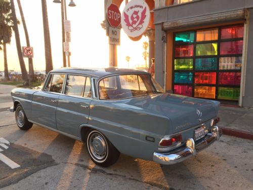 I bought the car in Ben Lomond, California at 22,812 miles and confirmed it has always had a working odometer. Based on the condition and chats with the previous owner, the actual mileage was 122,812 when I purchased it.It now has 131,400, so I put 8,400 miles on the car and the new engine.I managed the engine rebuild project and performed the installation with support from authorized Mercedes technicians.All service stated here is backed by receipts confirming parts and purchases made within the last 1.5 years. I performed most of the service with support from the Mercedes Classic Center and a few local independent Mercedes mechanics.I’m the third owner. The second owner was from Yakima, Washington who garaged the car most of its life. The first owner was from California where the car was originally delivered and sold.The W110 chassis is more commonly known as a "Fintail" model. The German name is “Heckflosse” which means "little fin." Some refer to the model as a Ponton. Approximately 161,618 200D models were produced from 1966 to 1968.Allegedly, this was the first crash-tested” Mercedes model. Has working three-point harnesses in the front and three lap belts in the rear.I recently drove it from Venice, California to Madras, Oregon for the eclipse and it ran excellent.