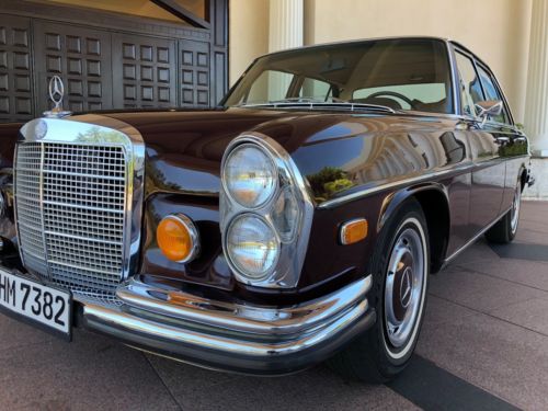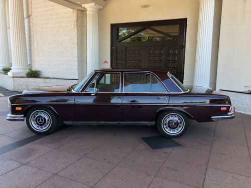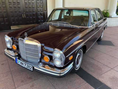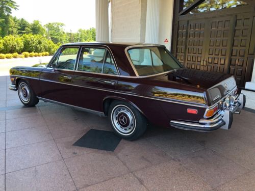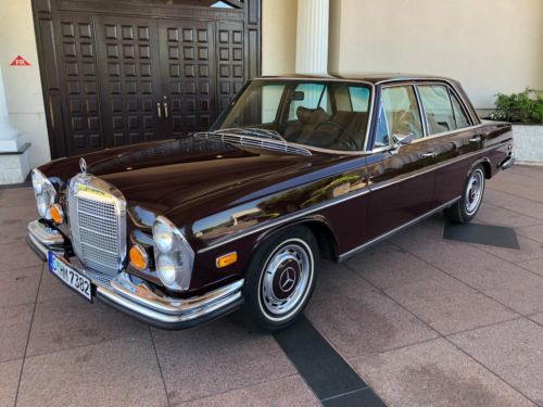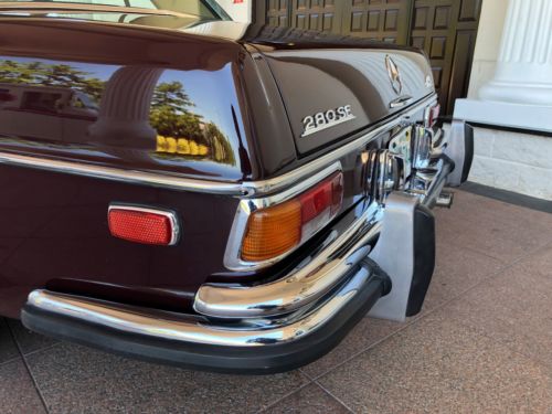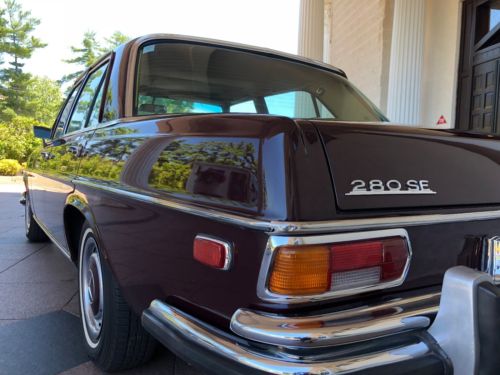 I am pleased to offer this 1973 Mercedes-Benz 280SE equipped with a 4.5L Engine & Automatic Transmission. Remarkably original survivor car documented with records from the previous two owners; current owner purchased this car in January of 2012 and cared for the car well keeping it serviced and stored indoors clearly evident in the pictures the car has remained in a beautiful driver quality condition. Finished nicely (with a single repaint) in its original Burgandy color over the original Bamboo Tan Leather interior. Body is in beautiful condition w/ minimal minor scratches from storage (maybe a single minor ding on entire car!), the trim and the body itself are very straight and solid. Excellent chrome, bumpers, grille glass, and rubber moldings! The Majority of this cars life was spent in Florida with no known rust issues other than a small bubble at the rear of one of the rear wheel wells, there is no evidence of any former rust or body repair.