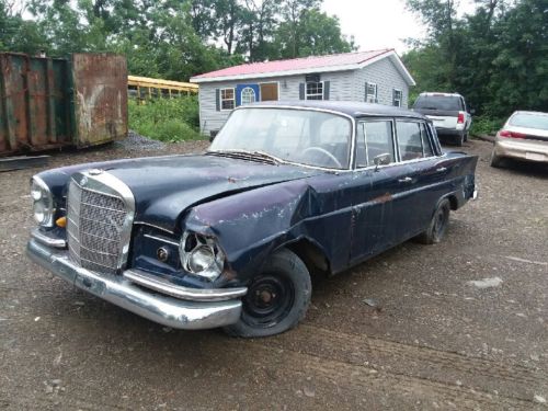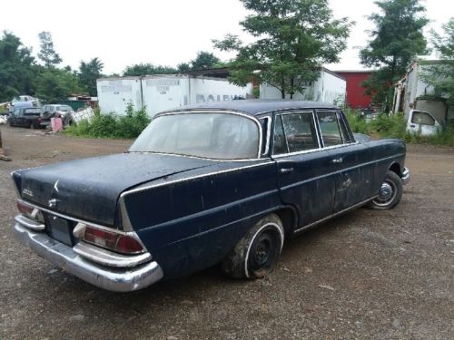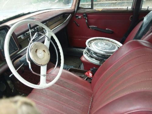 This is a 1966 Mercedes 230S. This has the 2.3L engine which is an inline six with the valve cover showing Zundfolge 153624. This sedan has a 3 speed manual transmission on the steering column. We do not have the key so we are not sure if the engine runs but everything is complete and due to the body damage its safe to say it will run and drive with some attention. The interior is complete and still in fairly good shape even with it's age. This vehicle is being sold "as is" with no warranty expressed or implied.