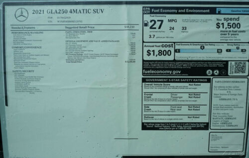 (207) 510-2250 prior to bidding.Buyers Inspection: Prime Motor Cars Mercedes-Benz has done our best to disclose all information known about this vehicle for auction. Prime Motor Cars Mercedes-Benz welcomes a buyers inspection. If you plan to have a buyers inspection, please make sure you inspect the vehicle prior to the auction ending. Inspection fees if any are Buyers responsibility.Representations and Warranties made by seller: This vehicle is being sold "as is". Manufacturer's warranties may still apply. Extended warranty may be available, MSRP: $45,145 - You found Me! The right 2021 GLA 250 4MATIC in mountain grey metallic paint, black interior, spiral trim, and the following options: Premium pkg, panorama sunroof, 19-inch wheels, adjustable second row seat, heated front seats, 64-color ambient lighting, keyless go, hands-free access, digital instrument cluster, 10-inch media touch-screen and more! GLA 250 4MATIC®, 4D Sport Utility, 2.0L I4 Turbocharged, 8-Speed, 4MATIC®, Mountain Gray Metallic, 10.25" Digital Instrument Cluster, 10.25" Media Display w/Touchscreen, 64-Color Interior Ambient Lighting, Adjustable 2nd Row Seat, Auto Dimming Rearview & Driver's Side Mirrors, Hands-Free Access, Heated Front Seats, KEYLESS GO®, Panorama Roof, Power Folding Mirrors, Premium Package, Wheels: 19" 10-Spoke w/Matte