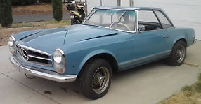 This auction is for a 1965 Mercedes 230SL. It does not have an engine or transmission, and I'm not sure what happened to the original engine. It belonged to my uncle, and he had a small block Chevy 350 in it. And apparently he'd take it to a drag strip in Southern California and won quite a few races. But later he pulled the engine and put it in another car.