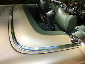 Paint is a stunning tunis beige metallic #462 complimented by the dark green interior #134. The car appears to have been resprayed once, and the paint is in very good condition with excellent depth and gloss. The front of the car shows signs of earlier bodywork; the “notch” at each of the headlight chrome surround was not reproduced. Also the left front fender has been replaced. The hood is in excellent condition, and the body number stamped into it matches the car’s body number. The aluminum soft top lid has some minor damage at the end where the top’s hinges hit it when a previous owner didn't close it correctly (please see the high resolution Flickr photos).