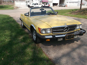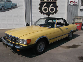 The body on the car is in very good condition and was extremely well maintained. RUST FREE! The paint on the car is factory color of Signal Yellow and is in very nice condition and looks almost as good as the day in rolled of the lot. A brand new soft top was installed only two years ago. The hard top that comes with the 450 SL is in excellent shape. All chrome trim, glass, and rubber seals are in great shape. The hard top has good seals and the headliner is in awesome shape. The tires are new. It has a recent front end alignment, everything checked out OK. The suspension is very tight and feels solid. Two years ago it had a brand new air conditioner compressor. Mechanically, this SL runs GREAT! The car starts right up and shifts smooth as silk. The V8 engine is surprisingly quick and responsive. Many Mercedes experts and mechanics stand behind the 4.5L as the best engine Mercedes ever made. It is reliable, easy to fix, and parts are readily available. The oil pressure is always at maximum. Even the cruise control works excellent. The radio works great and the antenna goes up like it should. Can you image the clock even works correctly.