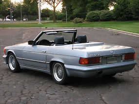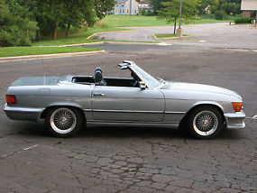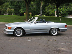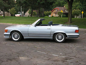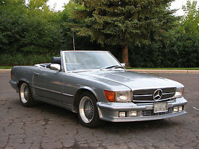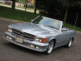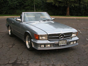 A very fast, safe and heavy convertible, this 1984 model 500 SL roadster is in great running condition. This is a great touring or highway car, smooth riding and agile, with a wonderful throaty roar. The deep blue cloth top is new, the original hardtop plus hoist and pulley to hang it are also included. A small backseat has safety belts, and folds down for extra luggage space. Wide radial tires are new, and this sports car has "Zender" bumpers.