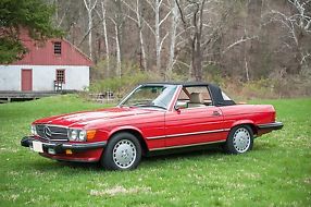 1989 Mercedes Benz 560SLThis cars exterior color is signal red with cream interior. It is a one owner car with all detailed documentation since 1989. The black soft top, leather seats, carpets, wood, and door panels are like new. This car has recently been serviced by Mercedes repair facility. There are no dings, dents or scratches in the body of the car. No rust anywhere!! I tried to take as detailed photos of the car. Outstanding original condition
