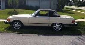 This 1983 Mercedes Benz 380 SL is a rare Manila Beige exterior color that is complimented by a immaculate brown leather interior. It is 3.8 L with automatic drive. Mint condition, no damage, and intact first aid kit. Comes with hard and soft top as well as garage top lift. This car has been garage kept since purchase. Air Conditioning will require an Evaporator. Otherwise in perfect condition. ***Always garaged, Excellent condition, Looks & drives great, Must see, Title in hand, Very clean interior, Well maintained***