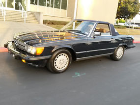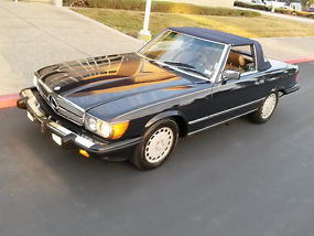 Finished in midnight blue over saddle tan with navy blue canvas soft top, this 99.9% Texas and California car has been driven just over 106,700 miles as shown on its working six-digit odometer. Offered here with a LOW RESERVE, this '87 SL sports a 5.6 liter V8 engine mated to the factory automatic transmission, nice blue canvas top with clear window, redone front seat upholstery, electric windows, driver side airbag, alloy wheels with near new rubber and cd stereo.