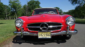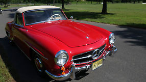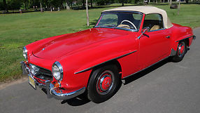 This 190sl was delivered to its first owner in 1961 in Northern NJ, Mercedes,order #17140406. He drove it about 60,000 miles before he did a complete offsite restoration. The car was disassembled, the body was sent to a shop in Michiganfor a full frame and body panel restoration. The engine and transmissionwere rebuilt by a leading NJ Mercedesspecialist, a new high end tan top was fitted, all instruments wererebuilt, a new tan leather interior was fitted, and the car was painted abeautiful fire-engine red (DB534). (I have all receipts which go with the car).