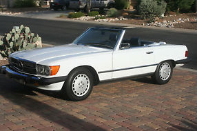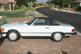 Beautifully maintained, always garaged, this 1988 arctic white MB 560SL with navy blue leather-interior and soft top has only 83,700 original miles. Includes all manuals, books, keys, and tools as well as its hardtop and a holder for storage. I am only the second original owner. The car is in perfect shape and has always been maintained by specialized Mercedes mechanics. This Benz is one the best collectibles of its kind. Available in Tucson, Arizona.