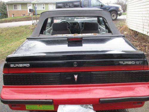 A rare car. Was told only 1000 made that year. Starts and drives. Sitting last 5 years, need to go over. I drove and got it up to 80 mph, no strange shimmy's or shakes. Engine and trans are good as the engine runs, has no unusual noises, doesn't smoke, has power, the trans shifted fine, also no noises or jerks or slippage, all oils and liquids in car check out, I am not a car guy persay and never drove a turbo before, the gauges all work. I was told the turbo was rebuilt, don't know any details. I would consider it a project although it runs good , a brake line in rear was replaced I'm sure the others should be, no leaks, car leaves no puddles or noticeable drops. Some oil on engine from leaky valve cover. The gasket looks to have been replaced, I found 2 loose bolts on end of valve cover and tightened them, I believe leaking has stopped. Car is far from perfect, body has dent in front drivers fender, a ding on corner of front bumper drivers side and rust spot on divers side. But not rot or body parts crumbling off. The drivers side is the worst you can see all I mentioned in pics. Passenger side is unscathed. Trunk is good, engine compartment is good, underneath is darn good with no major rot that I can see just some rust. Interior isn't the best, you can see in the pics. Drivers seat is power and works, passenger seat is the best, back seat is good except the sun damaged the top of it and it has splits. The power top works, the back plastic window is gone, there is a brand new replacement window in box that goes with it as well as parade boot or well cover. The ribbing on the back top rail on (once again drivers side) is loose and is split. I was gonna try to glue maybe a smear of black silicone caulk but I decided to let you do whatever. I don't know, oh muffler is a bit loud, there's newer section of pipe in the middle, so some exhaust work is in order, but nothing is hanging down or loose. Hideaway lights don't work, air condition either, heat works but blower doesn't blow hard, tired blower motor? No squeals or noises though. Radio works not sure on cassette, has tilt wheel.