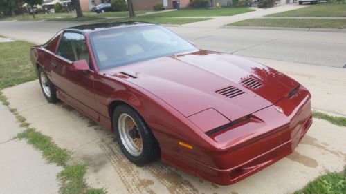 Hello. I'm putting my 1989 Trans Am up for sale. I've owned the car for a few years and put around 4,000 miles on it. The previous owner owned it for almost 12 years and only put around 10,000 miles on it. It has the rear spoiler deleted. It is also lowered, has headers and a custom y-pipe. All this work was done before by previous owner. The body is in nice condition with a couple cosmetic blems but no rust. The interior is fair. The drivers seat is worn some. I believe the interior is original. It has an aftermarket radio but also have factory radio. The engine and transmission I believe is original and can check numbers to verify. Pretty sure most of the car is all original considering when I replaced the rear shocks last year the ones that came off had a date code of 1988. The transmission is a 700R4 but has a corvette servo and had the torque converter replaced just before I purchased from previous owner. Car originated in Ohio, which is why the front fascia has the license plate holes.