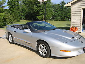 95 Pontiac trans am convertible clean and well maintained. Silver with a new black convertible top and black leather interior. This is a low mileage car with no issues, stored winters, no damage history and adult driven, one owner for over 17 years. The only fault I could find is a worn area on the drivers seat. Very classy car, ready to go. Feel free to ask questions.