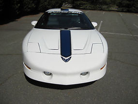 This is a 3 owner car that has been pampered all of it's life, and the condition shows that. No dents, dings, or imperfections at all. Absolutely beautiful paint, body, and interior. I've seen a quite a few of these over the years, and the only ones that compare to the overall condition of this one are priced much higher. Runs very well, burns no oil, & the transmission works perfectly also. The entire front fascia has been professionally repainted to fix rock chips and fill factory license plate holes. All 4 wheels professionally powder-coated in the original Arctic white - much more durable than the factory base/clear. This is a real head-turner, and has won several awards. Included is a display board with the original dealer invoice, and window sticker. At Buy it Now price, I will also include the ultra rare presentation binder mailed to each owner from GM, as well as other items such as several manuals, car models, collector items, and dealer advertising pieces. These cars are increasing in value, and like all other Trans Ams, will continue to appreciate. Get yours now, while they are affordable.