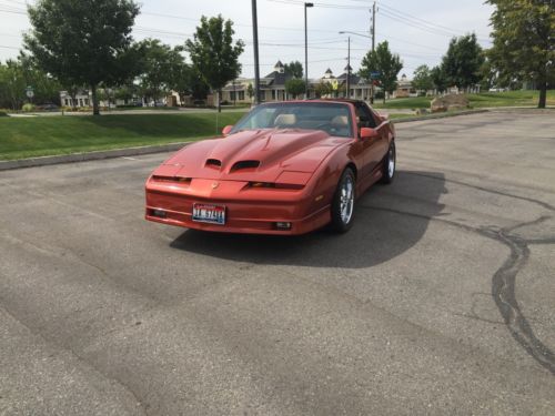 Trans am GTA, very good condition only 54000 original miles. A/T power windows power locks T-Tops. Recently tuned up V8 with platinum spark plugs, functional cowl hood. Mango orange exterior with tan interior 20" chrome foose wheels, Hurst shifter, tires still have lots of tread. There is a crack in the dash that was repaired once then split open but can be fixed again. Very fun and fast car please email me any questions
