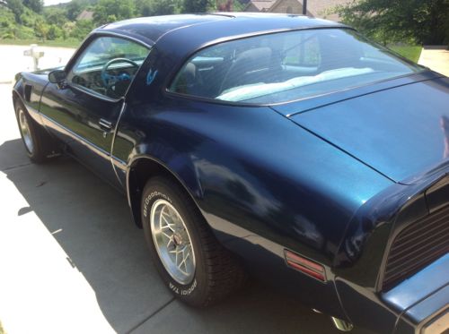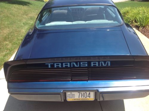 Over the past couple of months since we rescued this beautiful original 1979 Nocturne Blue Metallic (rare color) with light blue hobnail interior Trans Am, we have spent countless hours refurbishing where possible and replacing where necessary parts to bring this beautiful classic back to her former glory. The car had three owners prior to me and they were all friends. The car was owned by the third owner since 1985 and has been off the road and in his garage for almost 30 years, since 1989. The car does have headers on it that have been on it most of its life. The car does need repainted to make it a show car, but is presentable as an original paint car also. The interior is original and can be properly seen in the pictures. The last picture looking through the rear window shows a small 1" or less tear in the top of the rear seat. I think this could be repaired, it is not very noticeable. The t-top bags are still with the car. The plastics have been re-dyed as they were sun and just age faded. The carpet rear shelf package tray and headliner were also replaced to complete the freshing of the interior. Everything works as it should, AC/heater, speedometer, tachometer, even the clock moves ( it just doesn't keep time). There is no rust or rot that we have found on the car and we have had all of the interior out of the car. The prior owner told us that the paint is original and that there was no rot anywhere on the car. He also stated that the car had never been in an accident. Unfortunately carfax and others don't typically have records going back 40 years. I am going to try to list all of the work and or parts repaired or that we have replaced over the past couple of months to give you an idea of the work that has gone into this beautiful classic pony/ muscle car. If you have any addition questions or are interested in additional specific pictures, please let me know and I will do my best to accommodate. The car will also be for sale locally, so I reserve the right to end the auction early and sell to a local buyer. Thank you and good luck!