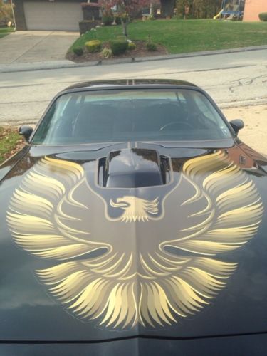 1979 Pontiac Firebird Trans Am. Black exterior (Starlight Black) with black interior (deluxe trim). Vehicle has gold trim with gold bird."fire chicken." Engine is a 403 V8 4bbl that was taken out and resealed in 2001-2002. Engine has 44,493 original miles. Car runs like off the assembly line. Brand new BF Goodrich Radial T/A tires. 1 yr old interstate battery. Bluetooth Sony CD player with Polk speakers. Interior is in great shape. Exterior is in great shape except 2 scratches on rear fenders and 2 unnoticeable dimples. To my knowledge I am only the second owner and had car for 20yrs. Vehicle is newly inspected. Original build sheet and documents come with car. I would rate the condition of vehicle as above average. Vehicle has matching numbers and is all original except for speakers/radio. I have original radio that had atrax cassette player and built in CB with CB antenna. Currently rolling on Pontiac Ralley II wheels. I also have 4 original gold snowflake wheels (15x8) that come with car. Car was just professionally detailed and looks great. Car has AC but needs recharged. Of course serious inquires only please.