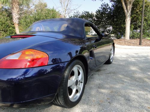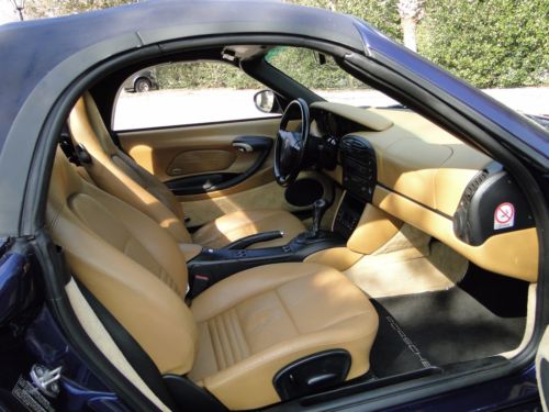 2002 Porsche Boxster always garaged with all the original factory documents & window build sheet. Lapis Blue exterior paint color with leather soft leather tan interior in perfect condition.