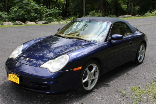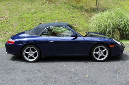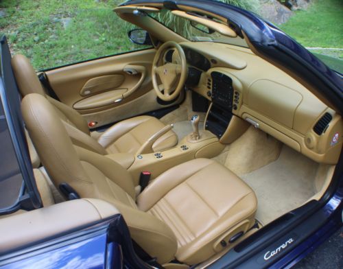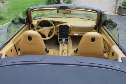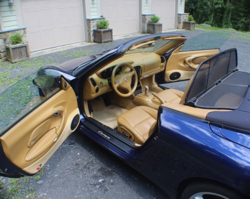 Excellent condition.Beautiful Metallic Blue with tan interior.Garaged, totally clean no rust, maintained, and comes with cover.Wind stop and trickle charger included.Tires excellent condition, see photo.Leather seats and Porsche mats.All original equipment and manuals included.Small isolated area on front lower bumper is nicked/scratched, see photo, difficult to photograph or see.Small scratches on top of stick shift (I guess from ring on finger)I do not arrange transport, but more then happy to work with someone of your choosing.Reserve pricing lower then Buy it now.Please email me with any questions.
