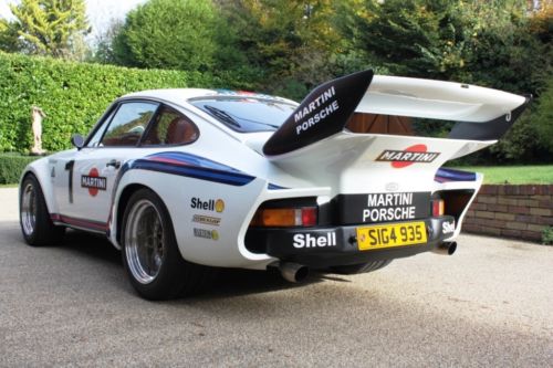 Wide steel flatnose/flauchbau front vented wings, wide rear 935 vented racing quarter panels and adjustable 935 racing tail wing. Grand Prix white with all ‘70s Martini racing livery, stripes, sponsor decals and badges, black interior.