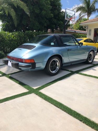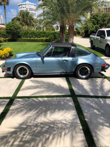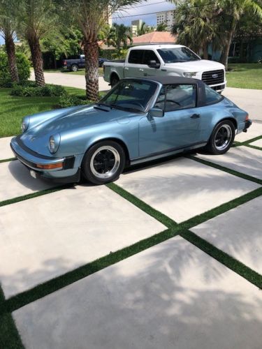1979 Porsche 911Sc Targa, Light Blue Exterior with black interior, purchased the car from California a little over a year ago, and have spent a lot of time going thru it, All exterior rubber seals have been replaced, all exterior lamps and lenses have been replaced, original factory light blue metallic paint code j4 was redone, interior is like new, original factory radio still works, factory electric antenna, all works as it should, car runs and drives as good as it looks, car has factory limited slip differential which is pretty rare, brand new tires all around, original fuchs restored to new, targa top like new, always garage kept and out of the rain, no rust underneath, just spent over 7k @ Gulf Performance here in Fort Lauderdale for New brake hoses, rear axles, o rings, valve cover gaskets, rebuild clutch cable, new speedometer cable, etc. You will not be disappointed with the car, can be driven daily, a/c converted to 134a freon, blows nice and cold. Reach out with any questions, feel free to inspect the car anytime.