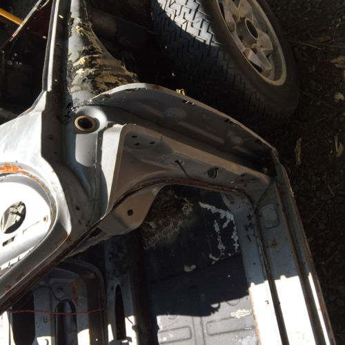 Chassis needs repair from impact just behind driver seat at pillar. These photos show the bodywork attached with a few sheet metal screws. Rear quarter panels were removed for replacement because they were poorly fitted with SC flares at some point.