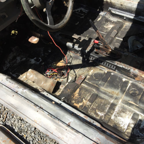Car is mostly rust free - except the rear parcel shelf and rear seats need total replacement or patching. Floor pan appears rust free, some damage at pedal cluster attachment. Roof and areas around windows, and cowl section all are solid. All the rust damage appears to be confined to the rear shelf and seat areas, typical of these cars.