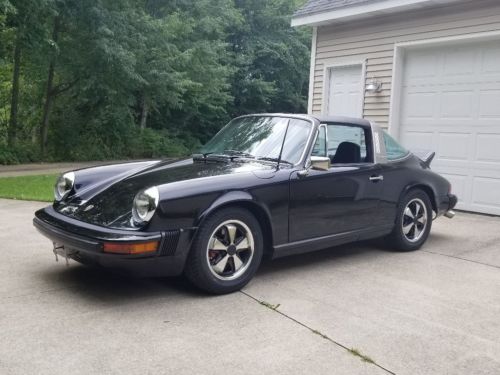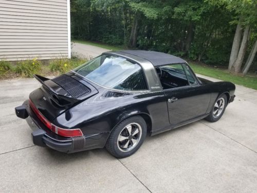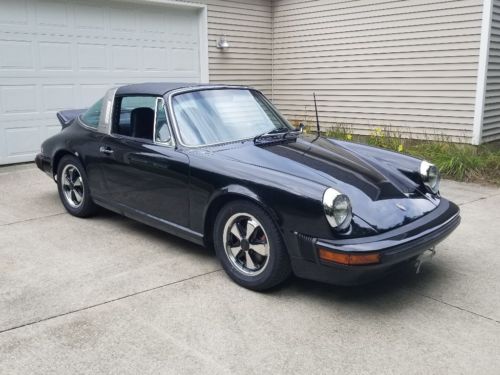 This is a very nice looking and driving 1974 Porsche 911 Targa. According to the 3rd owner that the current miles showing are original to the car, 37,347 miles. I cannot prove this, but I know the second owner rarely drove it and was stored for nearly 25 years by him. The second owner also had the car repainted from its original color of Gemini Metallic (Blue) code 335 to Black, It's been painted for approximately 10 years, still looks very good, a couple imperfections here and there but a great driver, local shows paint job. The door jambs and underhood were painted Black with new decals applied in the Engine Bay as original, the Carerra rear Duck Tail was also added at that time, but I do have the original Engine Lid which was also painted Black at that time. I added Flat Black Carerra Decals that you only see if you're looking hard for them since it had the Spoiler added I thought they would look great and they do. The interior I believe to be original and in very nice condition, no rips or tears in the seats, nice door panels, excellent dash, and the carpet is exceptional. I recently replace the original Fuchs alloys with reproduction Black and polished Fuchs look a like with new 205/60-15 tires, I have the original Wheels that will go with the car. the car comes with the original Spare Tire, Jack and Lug Wrench, and original tools. I do not have any paperwork, or maintenance records, or original Owners Manuals, unfortunately. I did pay for a Porsche COA, Certificate of Authentication from Porsche of North America shown on pictures. The car runs and drives wonderful, it's a joy to drive, goes into all gears effortlessly, no grinding in any gear. I've had it to about 90 mph with no shakes or shimmies, brakes stop you smooth and straight. The original Choke works as it should, the car starts also effortlessly. It does have an oil leak that I'm sure is from how much the car has sat the last 30 years, and the passenger defrost seems to fog up also most likely due to Oil/Air mixture going up thru the vent hose? All and all this is a great car at a reasonable price. If you have any questions just call me, the car and I are in Michigan so keep that in mind when you call. Todd (616) 446-3624