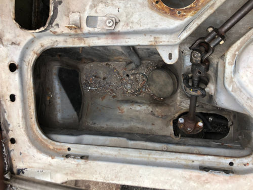 *If you choose to include the factory roof and doors rather than the fiberglass roof and doors, I will include thefactory front strut mount sheet metal and factory rear cross-member pictured whichwill be needed if bringing the tub back to stock