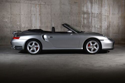 The Open-Air. The Roar From The Mezger. The Power Increasing X50 Power Kit. The Emotive Manual: What more could you ask for from this phenomenal, low-milage and Clean CarFax example of a Millennium Hero?! This 2004 911 Turbo Cabriolet (1 of 3099 cabriolets produced for the model year), is displayed in a pleasing Arctic Silver on Black colorway, with only 21,XXX miles from new! The coveted X50 Power Package adds improved intercoolers, larger K24 twin-turbochargers, a strengthen 6-speed manual transmission (to handle the additional torque provided by the upgraded turbos), along with a revised ECU.