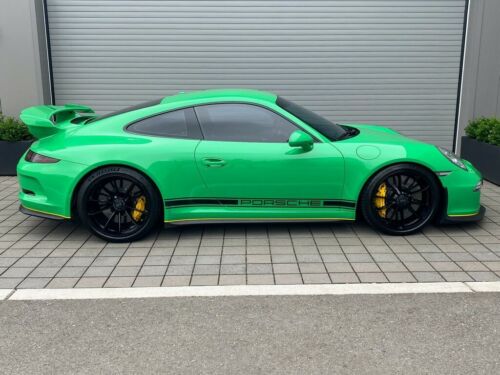 Pop some color to your garage with this Porsche 911 GT3 in special order Signal Green. The yellow pinstripe and brake calipers compliment the green exterior and are mellowed out by the black interior and 20" GT3 wheels in black. The Sport Seats are black with leather and Alcantara to match the rest of the interior. This GT3 is ready for the track to have some fun this summer.