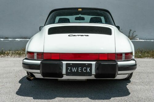 Zweck is pleased to present this 1987 911 Carrera Targa, featuring a G50 transmission, rebuilt 3.2 engine within the last 15K miles, and all original documentation including window sticker, sales brochure and manuals. Formerly owned by our local PCA chapter president, the Targa is finished in Grand Prix White over Marine Blue. It presents extremely well and comes with a very thick folder of service records showing consistent stewardship. Optioned from factory with limited slip differential, sport shocks, front and rear spoilers, 16 wheels, rear wiper and alarm, it sits on polished 'Turbo Fuchs' (sized 16x7 and 16x8) and has been lowered/aligned at Euro ride height with a Borla exhaust that sounds very good. Within the last three thousand miles, the car received new Dunlop tires; a complete brake service including front calipers, front and rear pads, brake lines, and fluid flush; and an oil change with Motul Classic oil and new pressure sender. The exterior has all of its original panels with VIN tags and carries mostly original paint, with recently-replaced H4 headlights, turn signals and fog light lenses. The targa top seals have also recently been replaced. The car drives extremely well with the 3.2 delivering strong power without smoke or leaks, and the G50 transmission shifts smoothly. The interior features a Momo Prototipo steering wheel wrapped in color-matching dark blue leather and a 917-style shift knob. The last compression and leakdown test performed showed 175-180 and 5-8% across all cylinders. With cold AC, this Targa is ready to be driven and enjoyed for many miles and smiles to come. Inspections are welcome. Please contactor 305.908.8911 with any questions.