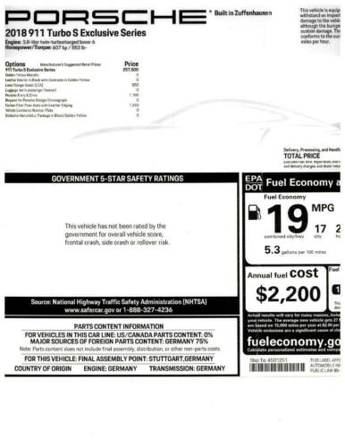 2018 Porsche 911 Turbo Coupe 1204 Miles GOLD Coupe 3.8L Automatic