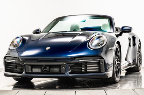 We have just added to our extensive exotic car inventory a beautiful 2022 Porsche 911 Turbo S Cabriolet in Night Blue Metallic over Black and Chalk leather interior and only 56 miles. This Turbo S is loaded with: 3.8 liter flat six with 620 horsepower, PDK transmission, 20 inch center lock wheels, carbon ceramic brakes, PASM sport suspension, front axle lift, Exclusive Manufaktur interior package (two-tone leather combination, deviated stitching, leather dashboards, leather grab handles, leather door panels, leather steering column), heated and ventilated seats, adaptive cruise control, night vision, lane keep assist, remote ParkAssist with 3D surround view, ambient lighting, passenger cupholder in leather, Bose sound system, black convertible top and much more.