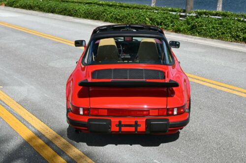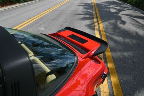 The overall condition of this car is excellent and shows very well all around. Starting for the condition of the original Targa top’s vinyl exterior, to the Cashmere leather interior, showing almost no wear, to the Guards Red gloss paint all around the exterior which enjoys a mid-life full paint job in original color and quality. Paint meter readings (available on request) show consistent all around. There is a small scratch on the paint on the left rear quarter panel. A rare 3.0 Turbo rear spoiler complements the Euro look achieved by the 30mm lowered suspension.