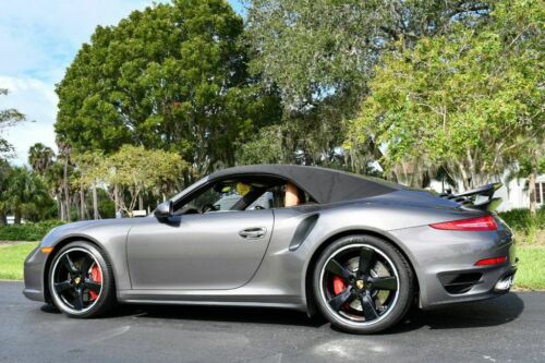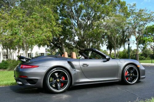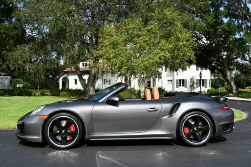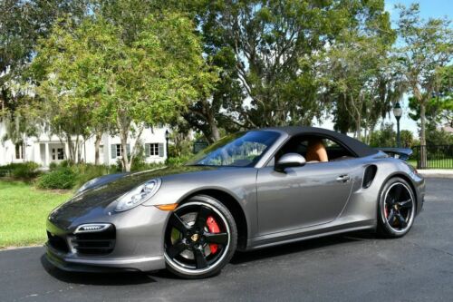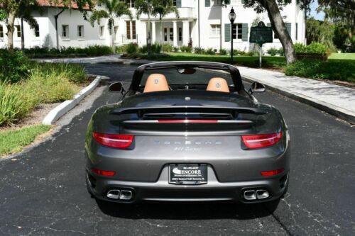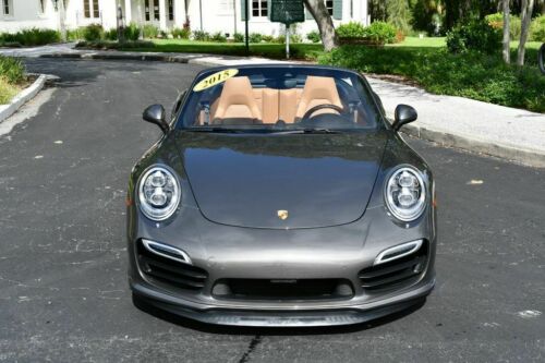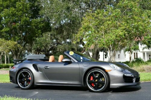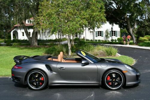 This 2015 Porsche 911 2dr 2dr Cabriolet Turbo with Premium Plus and Sport Chrono Packages features a 3.8L FLAT 6 CYLINDER 6cyl Gasoline engine. It is equipped with a 7 Speed Automatic transmission. The vehicle is Agate Gray Metallic with a Espresso/Cognac Leather interior. It is covered by a limited warranty. - Air Conditioning, Climate Control, Dual Zone Climate Control, Cruise Control, Power Steering, Power Windows, Power Door Locks, Power Mirrors, Leather Steering Wheel, Wood Trim, Clock, Tachometer, Digital Info Center, Homelink System, Tilt Steering Wheel, Telescoping Steering Wheel, Driver Airbag, Passenger Airbag, Side Airbags, Keyless Entry, Security System, Rear Defogger, Intermittent Wipers, AM/FM, CD Player, Sport Package, Leather Interior Surface, Bluetooth, Carpeted Floor Mats, Center Arm Rest, Center Console, Cup Holders, Daytime Running Lights, Front AC Seats, Front Heated Seats, Heated Mirrors, LED Headlights/Fog Lights, Navigation System, Overhead Console, Parking Sensors, PCM, Power Brakes, Premium Wheels, Rain Sensing Wipers, Rear Fog Lamps, Rear Spoiler, Rear Spoiler, Reverse Camera, Roll Stability Control, Side Curtain Airbags, Tire Pressure Monitor, Vanity Mirrors -