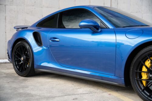 Cobalt Blue Metallic 2019 Porsche 911 Turbo S AWD 7-Speed Porsche Doppelkupplung (PDK) 3.8L H6 Turbocharged DOHC 24V LEV3-LEV160 580hp Color Selection for Leather Interior in Custom Color, Color Selection for Deviated Carpet i.c.w. Leather Interior in Custom Color, Exterior in Custom Color, Metallic, AWD, Adaptive Cruise Control, Air Vent Slats in Leather, Burmester High-End Surround Sound System, Climate Control Panel in Leather, Electric Slide/Tilt Sunroof, Extended Leather Interior Package Dashboard, Extended Leather Interior Package Door Surfaces, Extended Leather Interior Package Rear, Fire Extinguisher, Floor Mats w/Leather Edging & Decorative Stitching, Front Axle Lift System, Front Seat Heating, Front Seat Ventilation, Fuse Box Covers in Leather, GT Sport Steering Wheel in Alcantara w/PDK, Heated Multifunction Steering Wheel, Illuminated Door-Sill Guards in Carbon Fiber, Instrument Dials in Racing Yellow, Lane Change Assist (LCA), LED Headlights in Black, Light Design Package, Luggage Net in Passenger Footwell, PDK Gear Selector in Alcantara, Porsche Crest on Headrests, Porsche Entry & Drive, Power Steering Plus, Rear Center Tunnel in Lthr w/Decorative Stitching, Rear Footwell Lighting, Seat Belt Outlet Trim in Leather, Seat Belts in Racing Yellow, Smoking Package, Sport Chrono Clock Dial in Racing Yellow, Storage Compartment Lid w/Model Logo, Tinted Taillights, Vehicle Key Painted w/Key Pouch in Leather, Voice Control.