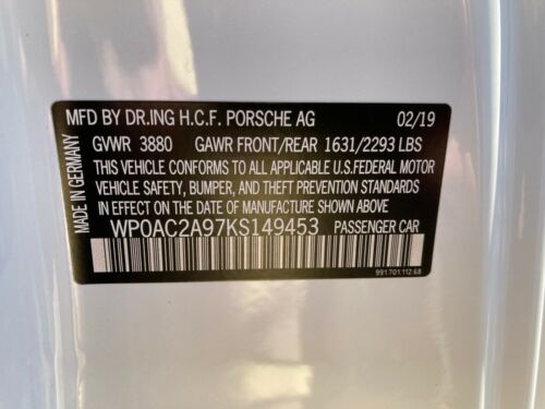 Pristine 2019 gt3 pampered in airconditioned dehumidified garage, carbon bucket seats,LED headlights, wheels painted black, door handles black,Sport design lower trim,chrono package, side skirts painted in ext. color, instruments dials in white, sun visors min alcantara,steering column in leather, door sill illuminated,Aluminum fuel cap with Porsche ornament, interior in leather black/red alcantara, extended range fuel tank,Front axle lift,6 peed manual (!),fire extinguisher, luggage net, smoking package, light design package, leather interior stitching in red, steering wheel red marker,Bose sound, seatbelt outlets in alcavntare,pedals in aluminum, auto-dimming mirrors with integrated rain sensor. Recent change of oil and change of brake fluid. Last year of 991.2 production ( usually the best cars at the end of production cycle.)