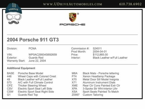 | Trim: | 996 GT3 Guards Red Sport Seats Painted Hardbacks |