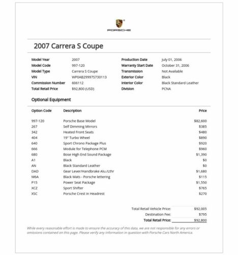 Looking for a time capsule! 997 Carrera S 6 Speed manual - Porsche 911 Carrera S Original MSRP $92800 Carfax report shows a small accident, fender bender in November of 2011. This is really minor, you got to see the car in person. The Porsche is Absolutely Gorgeous and has been well taken care of.Some of the options: & build sheet can be viewed in pictures 267 Self Dimming Mirrors342 Heated Front Seats404 19 Turbo Wheel640 Sport Chrono Package Plus 666 Module for Telephone PCM680 Bose High End Sound Package A1 Black AN Black Standard Leather DAD Gear Lever/Handbrake Alu./LthrM6A Black Mats - Porsche letteringP15 Power Seat Package XCZ Sport Shifter XSC Porsche Crest in HeadrestWe are a dealership upon appointment only. For any further information, please call our Office at 704.305.5373 or/and Call/Text Cyrus Klaesi at 702.286.3248 direct. . WE SPECIALIZE IN EUROPEAN SPORTS CARS, TIME TO TIME AMERICANA SPORT PEDIGREE AND TIME TO TIME ALL OF A KIND RARE TO FIND SUV's / TRUCKS, THAT ENTICE OUR CURIOSITY! WE ALSO HAVE A TEAM OF EXTREMELY SAVVY MASTER MECHANICS, THAT HAVE EARNED THE ABILITY TO MAKE GOOD JUDGEMENTS AND KNOW HOW TO WORK ON BRANDS LIKE; ASTON MARTIN, BENTLEY, FERRARI, MASERATI, MERCEDES-BENZ, PORSCHE & LAMBORGHINI'S - NOTHING IS UNCHARTED TERRITORY, UN_KNOWN IS NOT IN OUR VOCABULARY | CALL OUR OFFICE TO SCHEDULE AN APPOINTMENT 704.305.5373 OR ASK FOR CYRUS KLAESI DIRECTLY AT 702.286.3248 | TEXT MESSAGE WELCOME IF NO IMMEDIATE RESPONSE. . We Sell and Represent Clients Nationwide & Internationally. We are looking forward hearing from you | Thank you, Euro Prestige Imports . - WE CAN ORGANISE FOR YOU TRANSPORTATION NATIONWIDE DOOR TO DOOR, WE ARE FLUENT IN FRENCH, ENGLISH, UNDERSTAND GERMAN & SPANISH