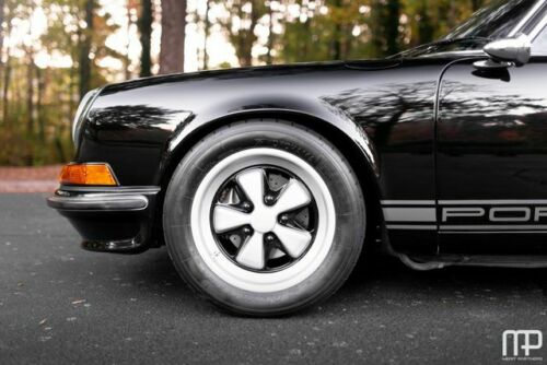 Merit Partners is pleased to present this outstanding 86 Backdate 911 with a very desirable long-hood conversion. We purchased this car from one of our out of state clients that has a big Porsche collection and spares no expense on his cars. This special 911 exemplifies the OEM+ build ideology we love - everything tasteful, everything purposeful, nothing overdone. This car is sublimely purposeful in its mission with the look of a Singer but at a fraction of the price. Cars like this represent what many new generation buyers are looking for and that is a classic car that has been modernized and made much more relevant from a power, suspension and fun to drive perspective. This car has been almost completely redone. Starting at the frunk with a steel hood, 911S bumper, impact strip, fenders, trim, horn grill and door frames were sourced and then H4 headlights added to complete the backdate look. Avant-Garde took on the huge task of seamlessly integrating the new front clip panels to caplet the back date transformation. While “under the knife”, the rocker panels were deleted, a fiberglass rear bumper with chrome panted bumperettes was installed and a custom license plate frame housing in stall and LED lights were fabricated. Talbot-style mirrors were fitted and custom Porsche graphics adorn both doors as well as the rear deck lid. With all the body updates complete, panel gaps and body lines were checked, measured and set and then everything was finished and blended in the correct Schwarz (code A1) paint.Rounding out the exterior work, a polished metal engine grill was installed in place of the plastic grill; an early rear window (without the awkward looking third brake light) was installed, and all the window seals were replaced (including the rear quarter window gaskets). Finally, polished oil cooler lines can be seen running the length of the passenger side of the car for the perfect bit of “show” without being ostentatious. No air-cooled build would be complete without a genuine set of Fuchs. This particular set is 16” staggered 7” front and 9” rear finished in an RSR inspired satin silver with black windows. The Fuchs hang on 52mm wheel studs and are held in place with open, steel wheel nuts.