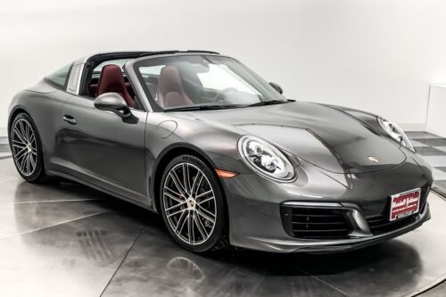 We have just added to our extensive exotic car inventory a beautiful 2019 Porsche 911 Targa 4S in Agate Grey over Bordeaux Red and Black leather with only 22,389 miles. This Targa is loaded with: 3.0 Liter twin turbo H6, PDK transmission, 20 inch 911 Turbo wheels, wheel caps with colored Porsche crests, sport package (Sport Chrono package, rear axle steering, GT Sport steering wheel, sport exhaust with silver tailpipes, SportDesign side mirrors), premium package plus with 14 way sports seats (LED headlamps with dynamic lighting, light design package, automatically dimming mirrors, front seat heating and ventilation), heated multifunction steering wheel, lane change assist, Bose premium audio, voice control, luggage net in passenger footwell, black folding top and much more.