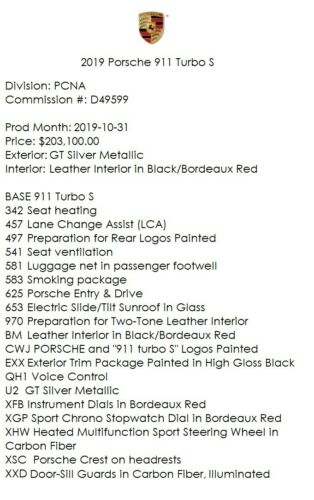 2019 Porsche 911 Turbo S 700 Miles GT Silver Metallic Coupe 3.8L Twin Turbo H6 5