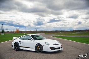 About the package:The Switzer R911 Porsches starts with BOTH the well-proven Porsche GT2 and 997 Turbo packages and then pushes them beyond anything else in the industry. Using race fuel, Switzer’s R911 delivers more than eight hundred horsepower to the wheels. That is 50% more power than Porsche’s flagship, the Porsche GT2 RS. With Switzer’s MONSTER intercoolers ensuring consistent engine performance with lap after lap and run after run, this is an excellent flexible trackday package. And with a (conservative) 911 hp on tap, virtually nothing in the world can pass one of the Switzer R911 997 Twin Turbo Porsches down the straights.