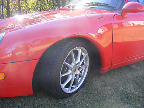 The car's exterior is also in excellent condition. The original red paint still has its luster. There very few minor rock chips as you would expect from a car this age, but no scratches or dents. All four wheels look great with no road rash and the tires have plenty of tread left. The convertible top functions as it should.